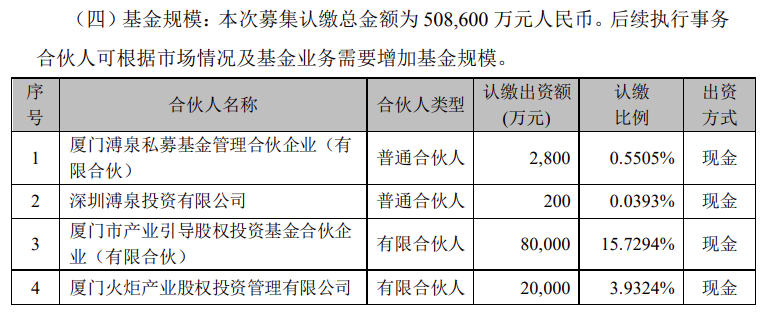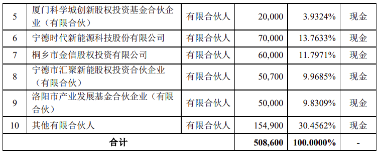 据悉,拟设立的基金名称为福建时代泽远碳中和股权投资基金合伙企业(有限合伙),本次募集认缴总金额为508600万元。基金主要投资于新能源及高端制造领域,投资前述领域的比例不得低于基金认缴出资总额的60%。合伙企业作为基金的存续期限为七年,自首次交割日起计算,其中前四年为基金投资期,投资期届满至存续期限届满之日为基金的回收期。