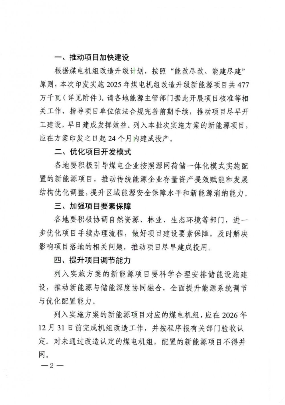 列入实施方案的新能源项目对应的煤电机组,应在2026年12月31日前完成机组改造工作,并按程序报有关部门验收认定。对未通过改造认定的煤电机组,配置的新能源项目不得并网。