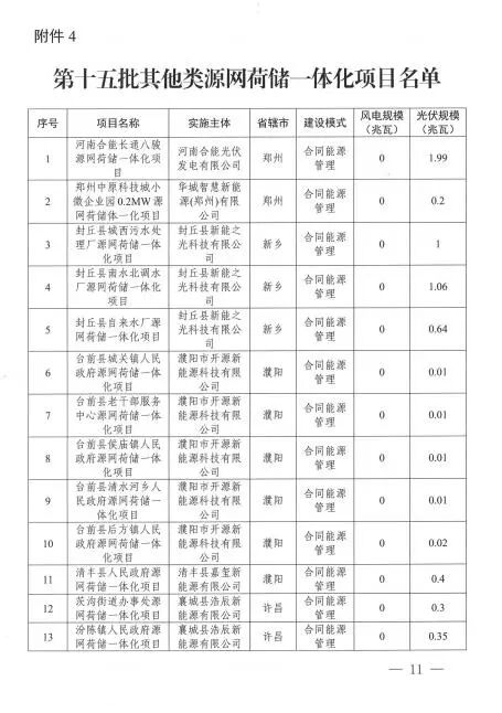 近日,河南省发改委发布《关于印发第十五批源网荷储一体化项目的通知》。